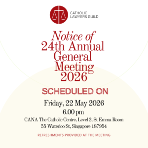 NOTICE is hereby given that the 24th Annual General Meeting (“AGM“) of the Catholic Lawyers Guild (Singapore) (“CLG“) will be held as follows: